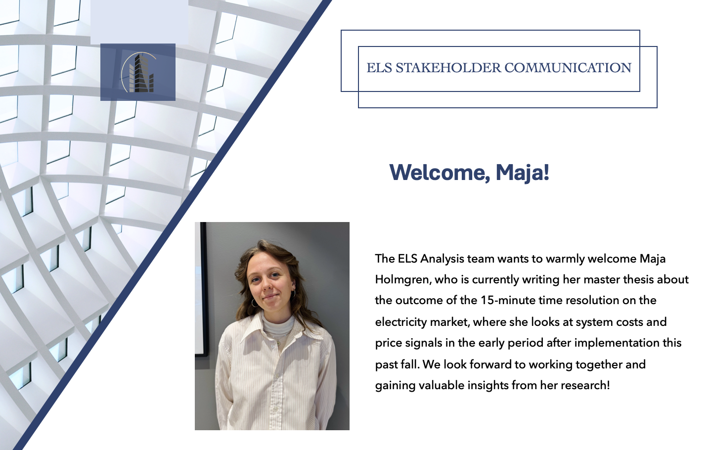 ELS Analysis team is happy to welcome our new intern Maja Holmgren!